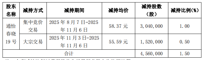 中国经济网北京11月10日电 中石油股份(002891.SZ)8日发布关于控股股东联合减持计划实施完毕的公告称,公司于2025年7月17日披露了《预披露公告》。烟台中兴生物科技股份有限公司(以下简称“烟台中兴”)持有公司456万股(占一致行动人统一春晓19号证券投资基金(以下简称“统一春晓19号”)拟自减持计划公告之日起15个交易日后的三个交易日起(即2025年8月7日至2025年11月6日),公司拟通过大宗交易和/或集中竞价交易方式减持不超过456万股(占公司总股本的1.50%)。 2025年11月6日,公司于19日收到统一春晓出具的《关于减持股份实施结果的通知函》。至2025年11月6日,本次减持计划实施完毕。 2025年8月7日至2025年11月6日,股东同益春晓19日通过集中竞价交易方式减持304万股,平均减持价格为58.37元; 2025年11月3日至2025年11月6日,统一春晓19日通过大宗交易减持152万股,均价55.59元。合计减持4,560,000股。经测算,同益春晓本期19日减持兑现金额约为2.62亿元。 2024年年度报告中冲港口股份有限公司显示,公司控股股东为烟台中兴,公司实际控制人为郝忠礼、肖爱玲,统一春晓19号为实际控制人的一致行动人。郝忠礼担任公司董事长兼总裁。华创于2017年8月21日在深圳证券交易所中小板挂牌上市,本次公开发行股票数量为2500万股,发行价格为15.46元/股。保荐机构(主承销商)为宏信证券股份有限公司,保荐代表人为尹鹏、任斌。中石油股份本次募集资金总额为38,650万元,募集资金净额为32,197.17万元。本次发行总费用为6452.83万元,其中承销费和保荐费4716.98万元。 2019年3月13日,关于公开发行股票的公告c 华创股份有限公司发行的可转换公司债券显示,本次可转换公司债券募集资金19,424万元。本次发行可转债募集资金扣除承销保荐费人民币 7,335,743.00 元后的余额 186,904,257.00 元已于 2019 年 2 月 21 日提取至指定保荐公司(主承销商)募集资金专用存储账户,并扣除与本次发行相关的费用等人民币 3,400,000.00 元。评级费、律师费、审计费、验资费等,公司本次发行募集资金金额为183,504,257.00元。山东和信会计师事务所(特殊普通合伙)进行了核查,并出具了“和信验字(2019)第000013号”《核查报告》。 2020年10月29日,中创股份有限公司发行报告书及非公开发行股票名单公告显示,本次发行情况冰块37.50元。和信会计师事务所(特殊普通合伙)确认收到募集资金,并出具了“和信验字(2020)号”资本报告书。公司实际发生的发行费用总额为17,327,710.67元(不含增值税),实际募集资金金额为634,171,489.33元。2022年11月18日,公司公开发行募集资金的上市公告华创股份发行的可转换公司债券显示,本次可转债发行募集资金总额为76,904.59万元,扣除承销保荐费12,000,000.00元后,本次可转债发行募集资金余额75,704.59万元已于10月31日由保荐人(主承销商)汇入公司指定基金。 2022年 评级费、律师费、审计费、验资费等发行相关费用、公司资金数额 14,125,898.38本次发行募集资金人民币754,920,001.62元。和信会计师事务所(特殊普通合伙)进行了页面验证,并出具了“和信验字(2022)第000056号”《验资报告》。经测算,中石油股份前述四次募资金额达20.01亿元。
