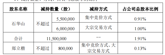 中国经济网北京11月10日电 汉宇集团(300403.SZ)7日晚间披露,控股股东、职工代表董事、高级管理人员减持股份的预披露公告称,持有汉宇集团207,006,599股(占公司总股本34.33%)的控股股东史华山拟减持股份价值控股股东、职工代表董事、高级管理人员自公告发布之日起15个交易日后3个月内持有的股份。本次集中竞价减持公司股份数量不超过 5,500,000 股(占公司新增股本的 0.91%),并以集体竞价方式减持公司股份流通股不超过6,000,000股(占公司总股本的1.00%)。公司减持股份总数不超过11,500,000股(占公司总股本的1.91%)。以11月7日收盘价15.71元/股计算,石花山此时计划套现约1.81亿元。职工代表董事、副总经理郑立凯持有公司股份 4,776,734 股(占公司总股本的 0.79%),拟自公告之日起 15 个交易日后的 3 个月内,通过集中竞价及禁区交易方式减持不超过 80 万股(占公司总股本的 0.13%)。石华山的股份来源于公司首次公开发行股票前持有的股份(包括因公司转增股本而相应增加的股份);郑立凯公司股份来源于公司原股东泰安盛宇企业管理咨询服务中心(有限合伙)(以下简称“泰安盛宇”)注销清算,其通过泰安盛宇间接持有的公司股份转为直接持有的公司股份。新浪财经数据显示,石华山最初持有2.92亿股,占总股本的48.36%。石华山自2020年1月21日起首次减持汉宇股份集团,截至目前已减持该公司股票8488.67万股,累计清偿约6.4亿元。汉宇集团2024年年报显示,公司控股股东为石华山,石华山、梁迎光为公司实际控制人,石磊为石华山、梁迎光之子。石磊、郭丽华、石泰山都是与实际一起行动的人控制器。